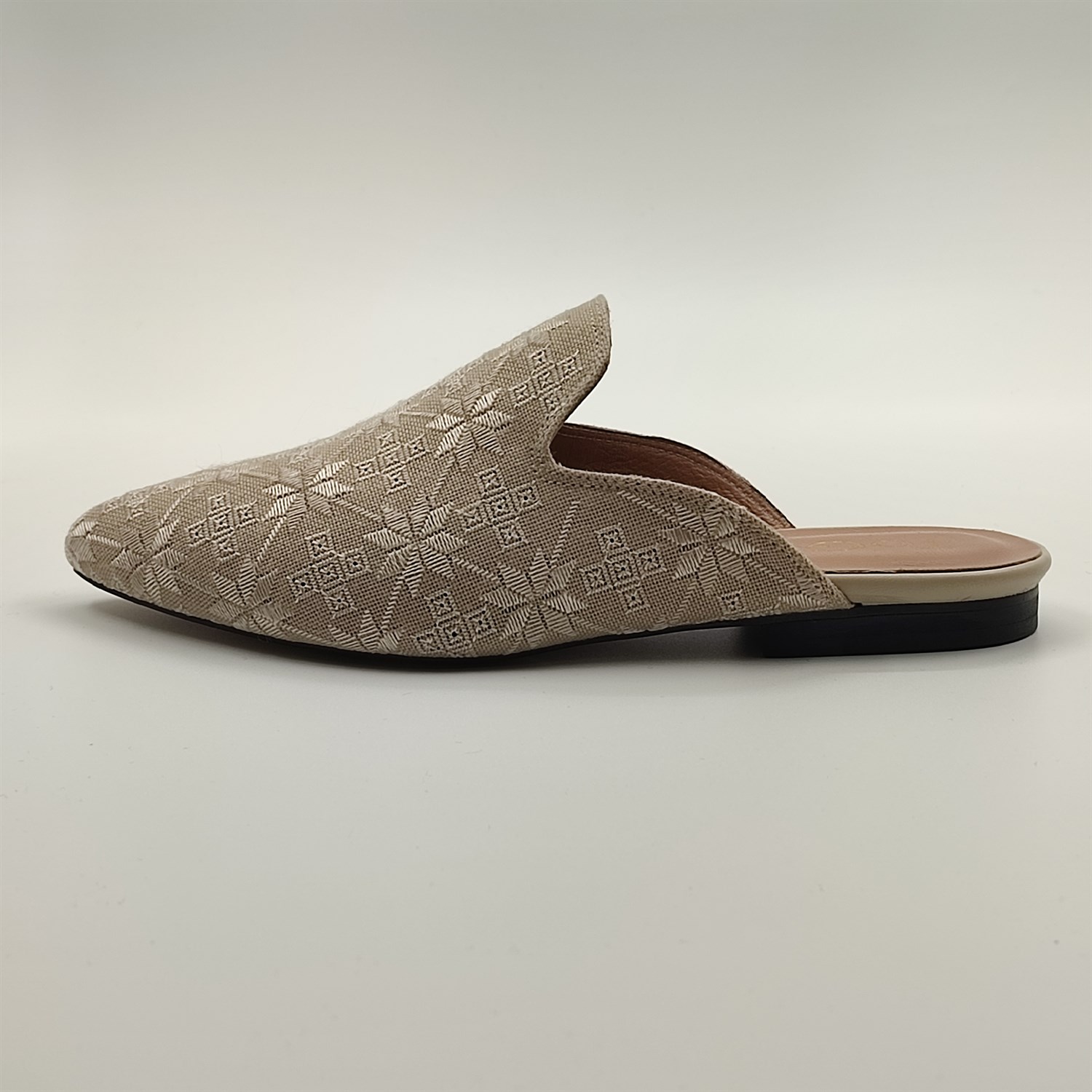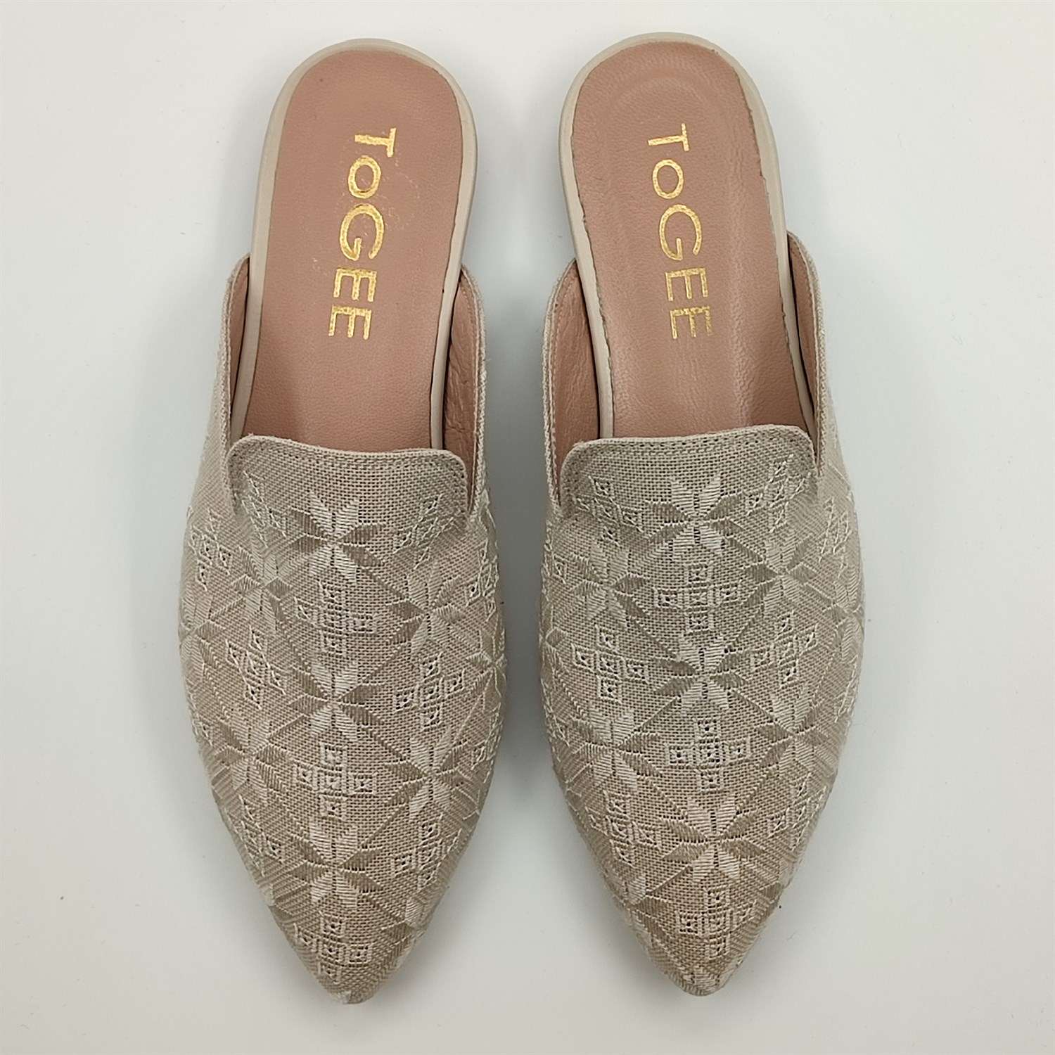 Anadolu'nun usta zanaatkarları tarafından el işçiliği ile üretildi. Keten kumaş üzerine Antep İşi tekniği ile tüm yüzey bezemesi şeklinde işlenen ToGEE terlik, geçmişi geleceğe taşıyan muhteşem parçalarımızdan biridir.