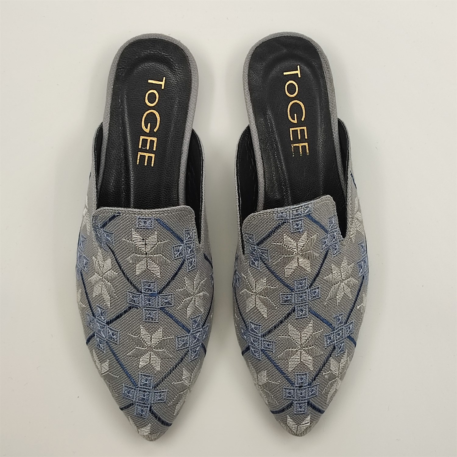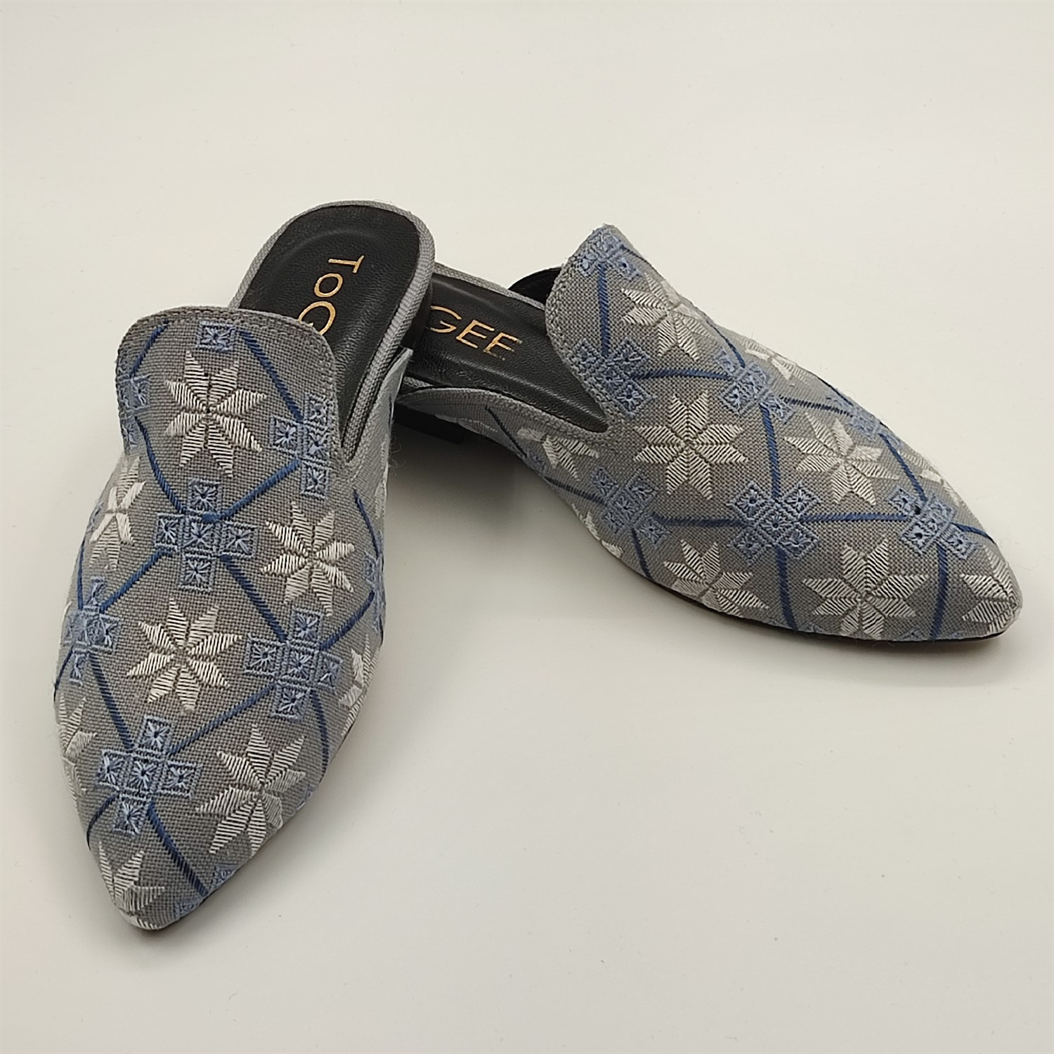 Anadolu'nun usta zanaatkarları tarafından el işçiliği ile üretildi. Keten kumaş üzerine Antep İşi tekniği ile tüm yüzey bezemesi şeklinde işlenen ToGEE terlik, geçmişi geleceğe taşıyan muhteşem parçalarımızdan biridir.