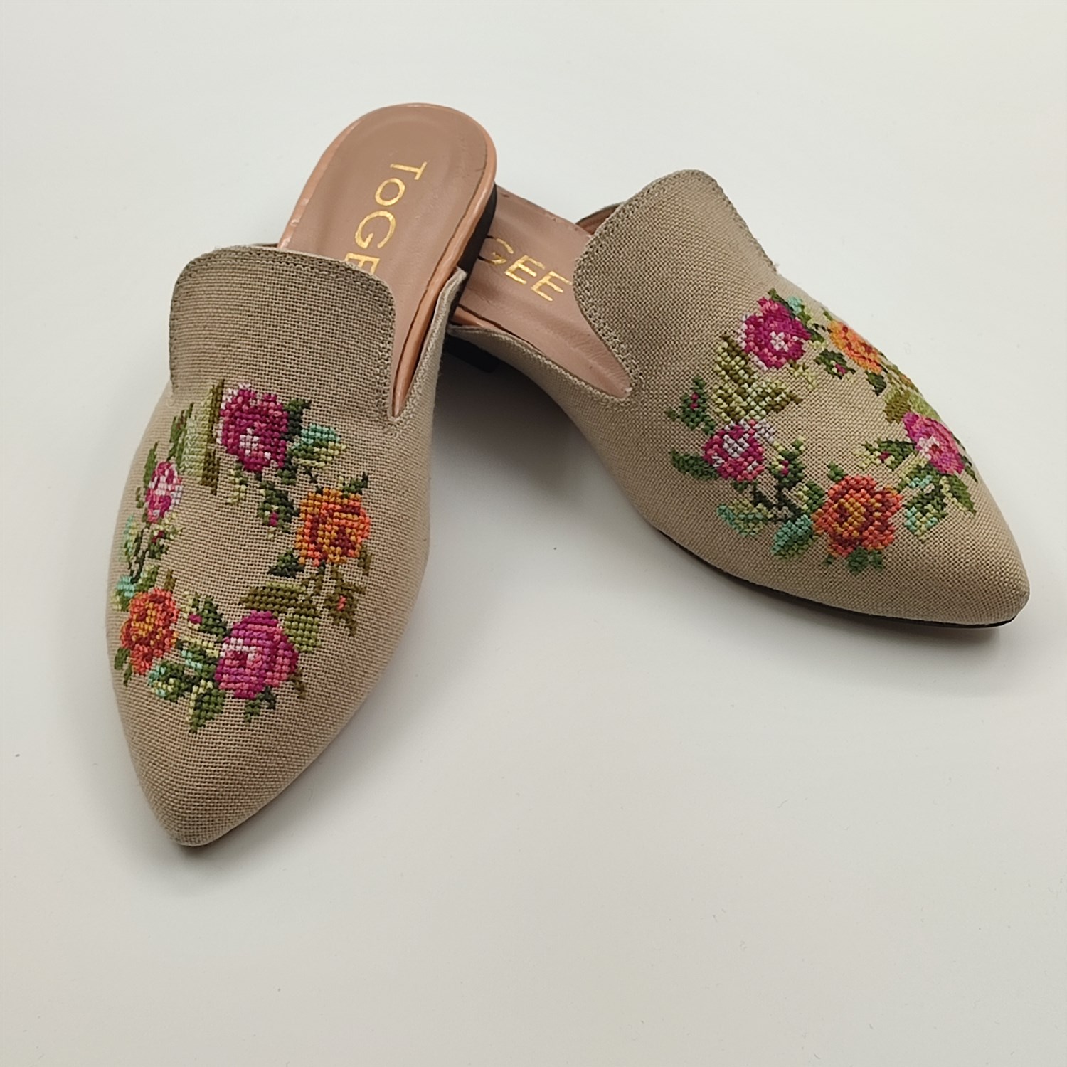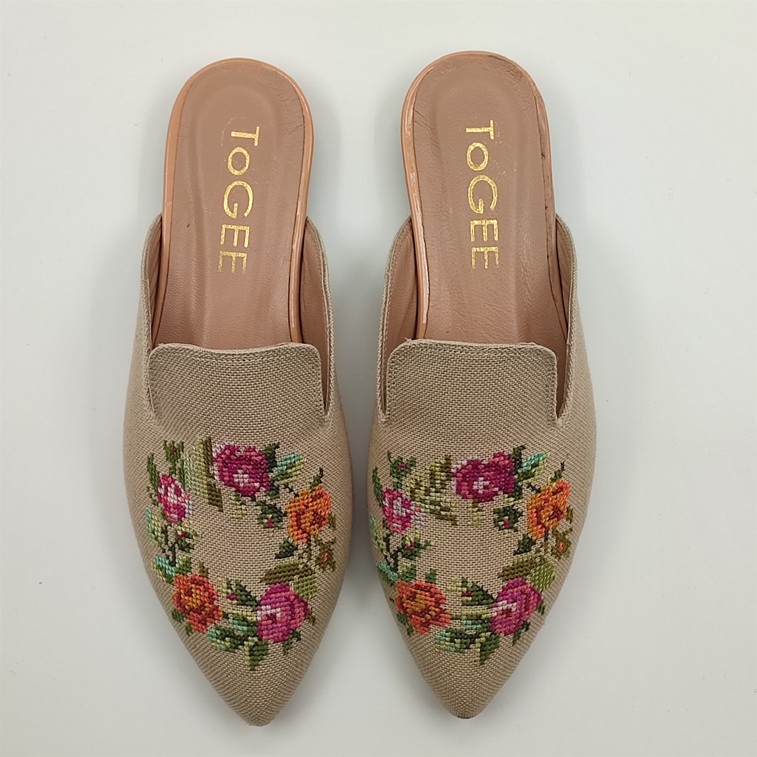 Kanaviçe işlemeli terlik