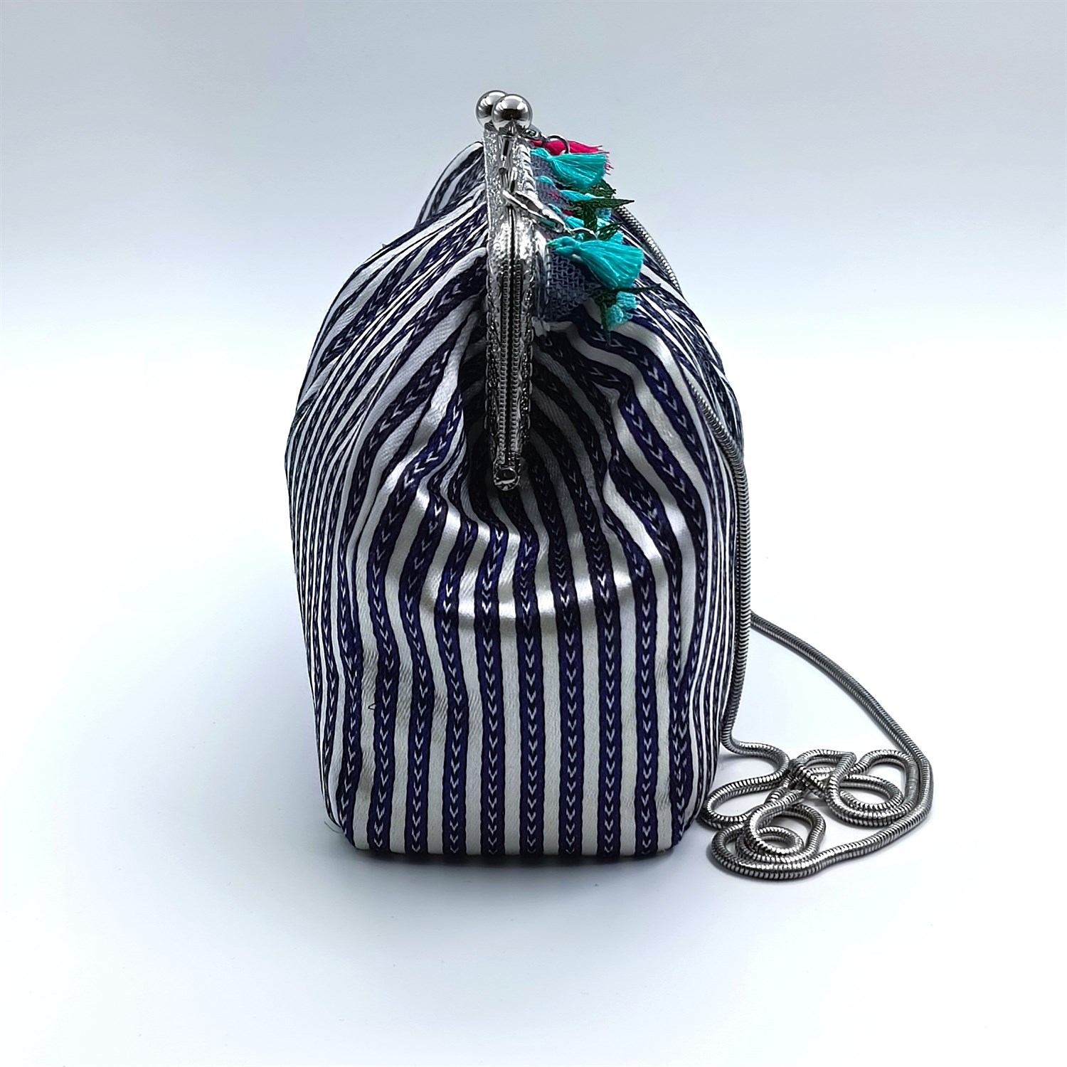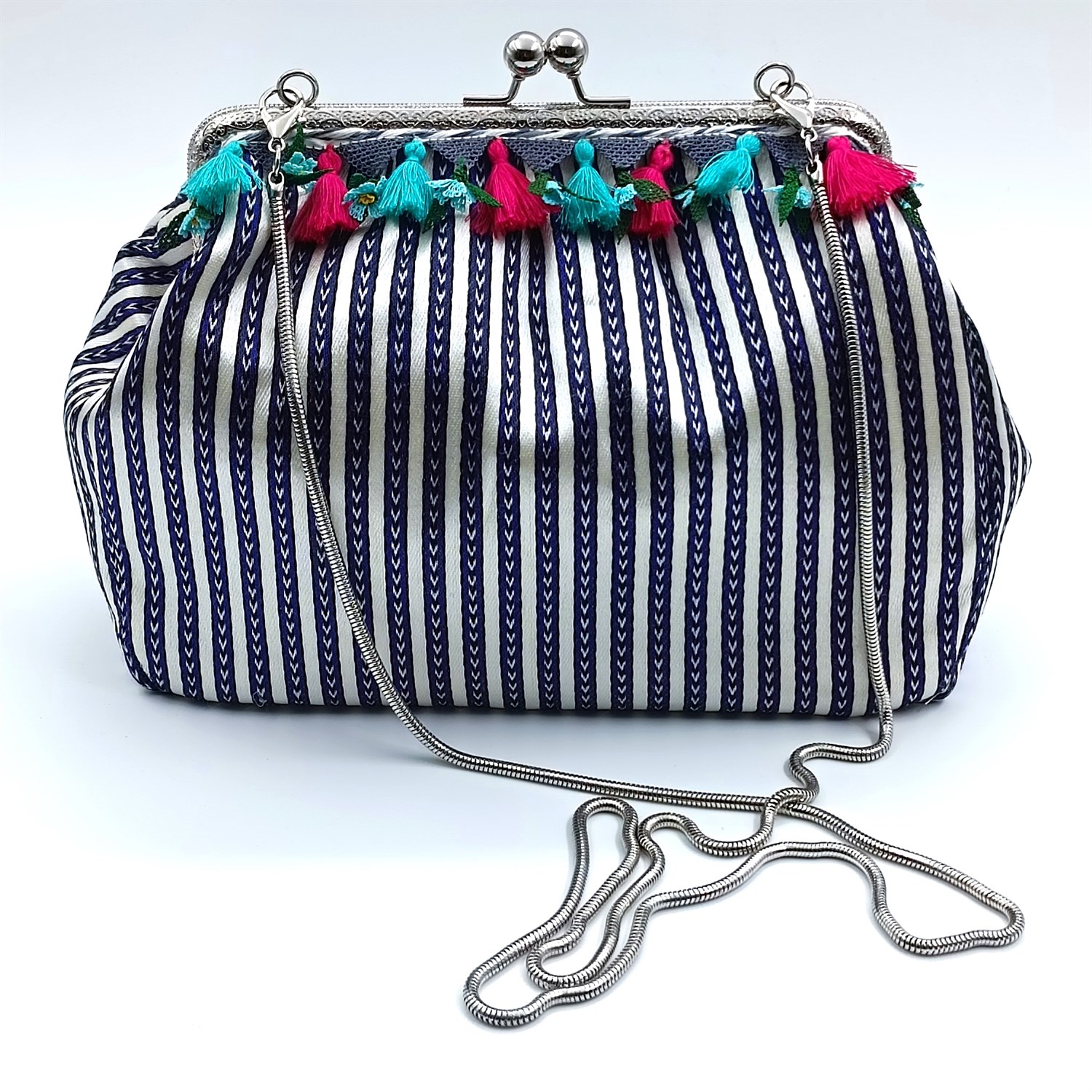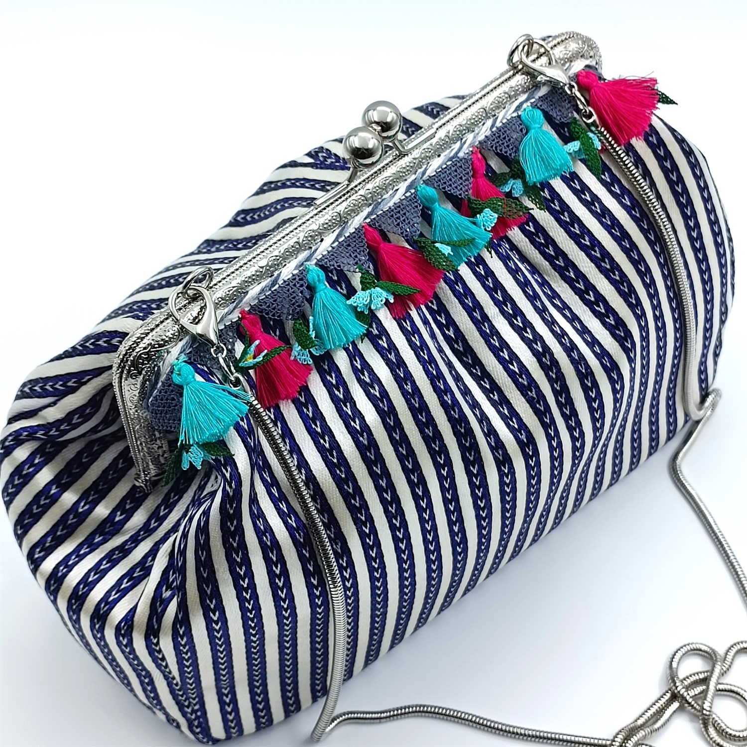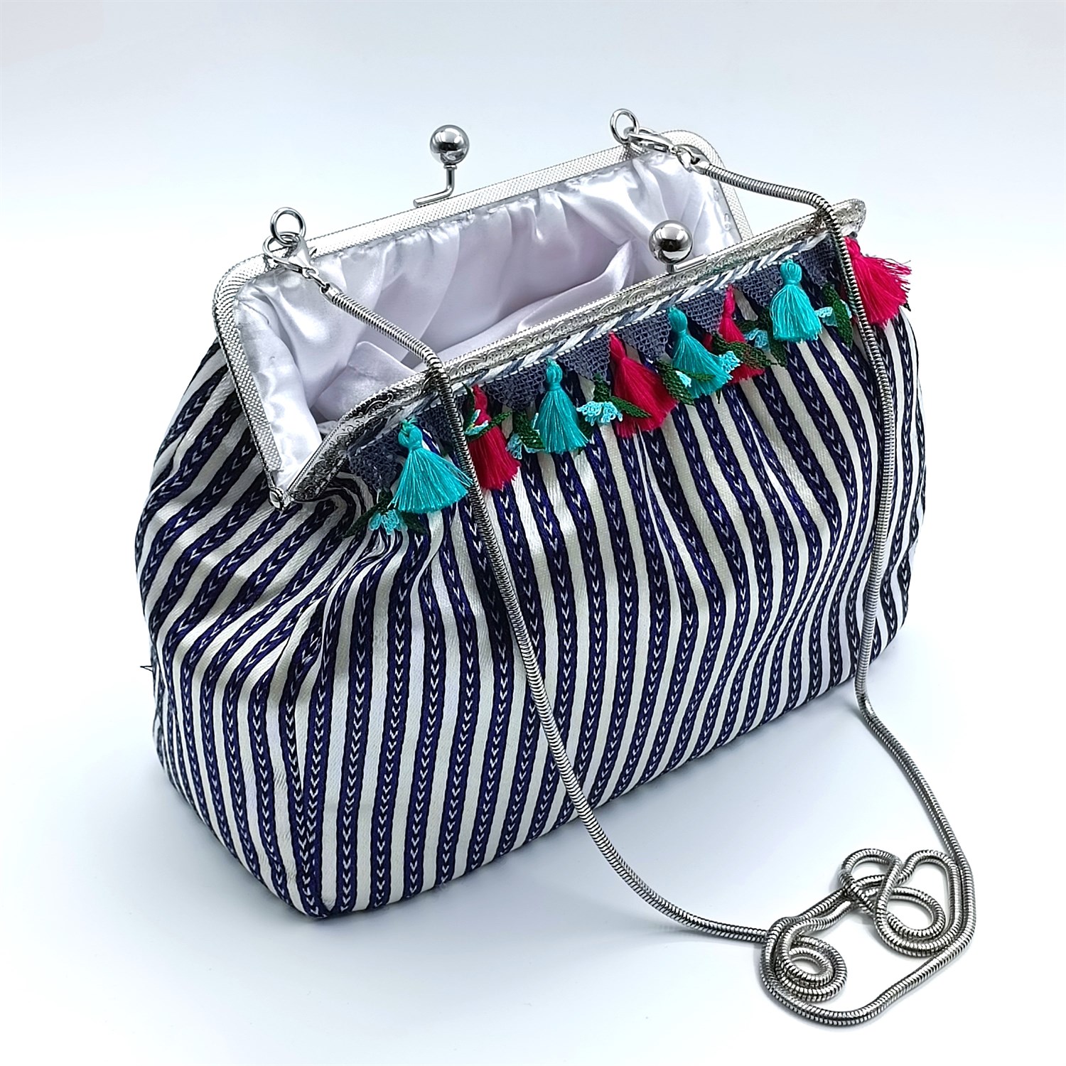 Kutnu kumaştan üretilmiş olup üzeri iğne oyası ve püskül detayları ile süslenmiştir.