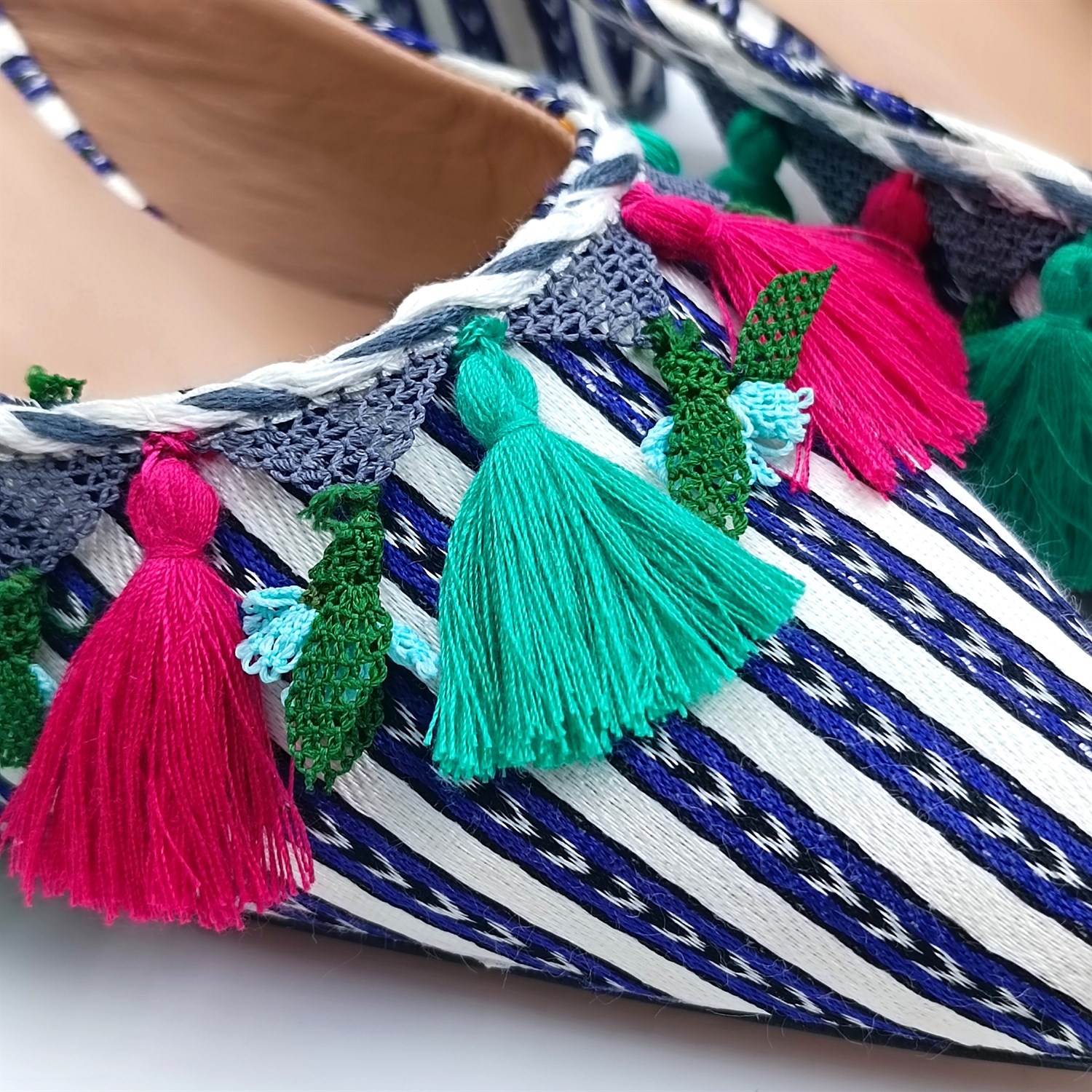 İğne oyalarının zengin işçiliğini el dokuması harika bir kutnu kumaş üzerinde birleştiren bu işleme sahip olmak isteyeceğiniz harika bir tasarım.